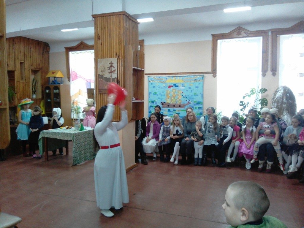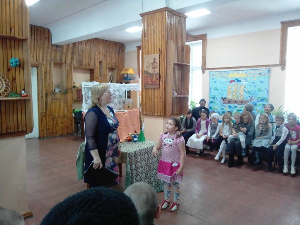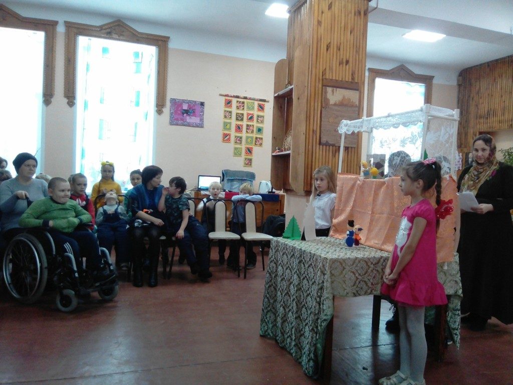 Иерей Георгий Григуцяк поздравил детей и родителей с праздником Введения во Храм Девы Марии. А после младшая группа воскресной школы представила кукольный спектакль «Мамин колобок» (руководитель Елена Сухорукова). Воспитанники Ларисы Анисимовой, руководителя кукольного театра «Дом», также представили два спектакля. Дети в стихах благодарили всех мам за то, что они есть на свете. Выступили и те ребята, для кого был организован праздник. Дети читали стихи и басни, танцевали.